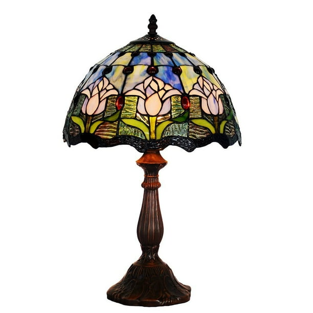 Bieye Tiffany Style Stained Glass Tulip Table Lamp With 12 Inches Handmade Lampshade And Zinc Base Blue Walmart Com